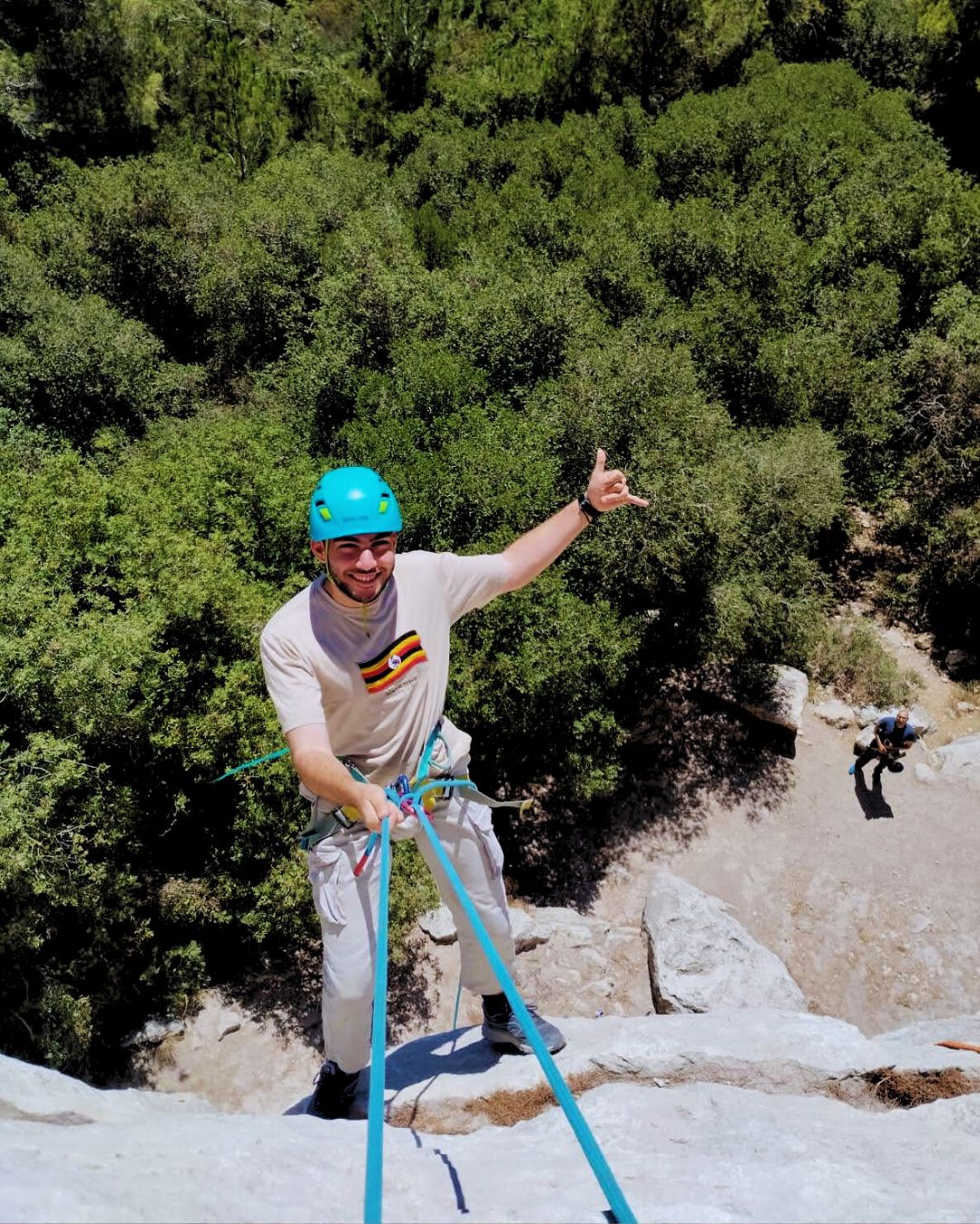 לאחר שכל המשתתפים יגיעו לתחתית המצוק, אנו נבנה את עמדות הטיפוס ואת החלק השני של הפעילות. המשתתפים יוכלו להתנסות בטיפוס כמו גם באבטוח אחד את השני תחת ההשגחה של המדריכים שלנו. הטיפוס הוא בטכניקה המכונה "טופ-רופ", המקובלת בכל קירות הטיפוס המלאכותיים בארץ. ניתן לטפס לאיזה גובה שרוצים ומומלץ לכל אחד ואחת לנסות זאת!