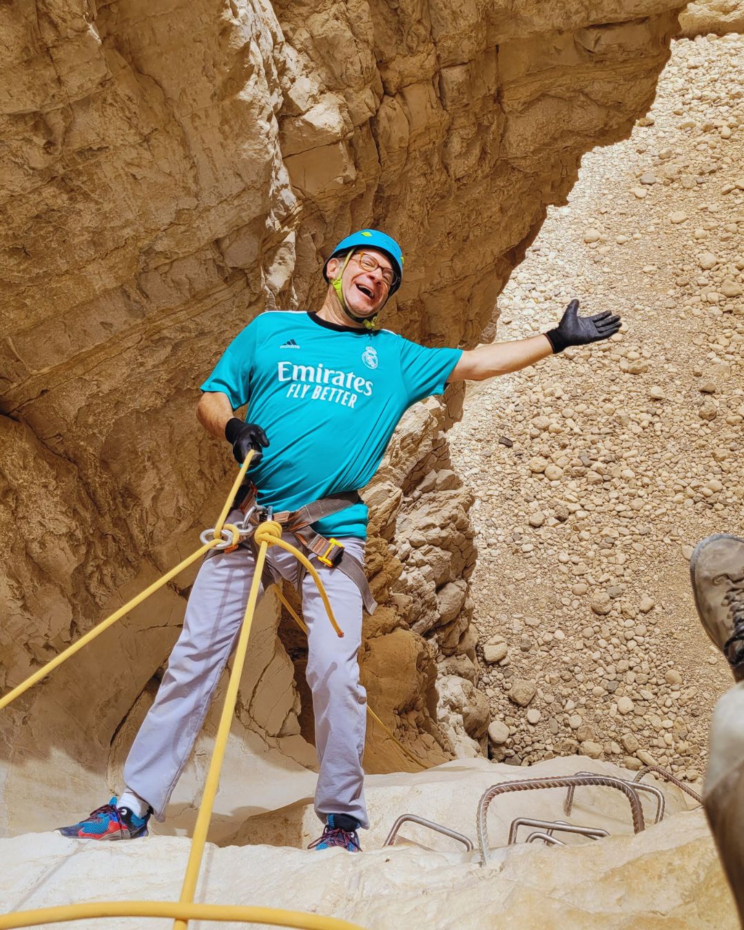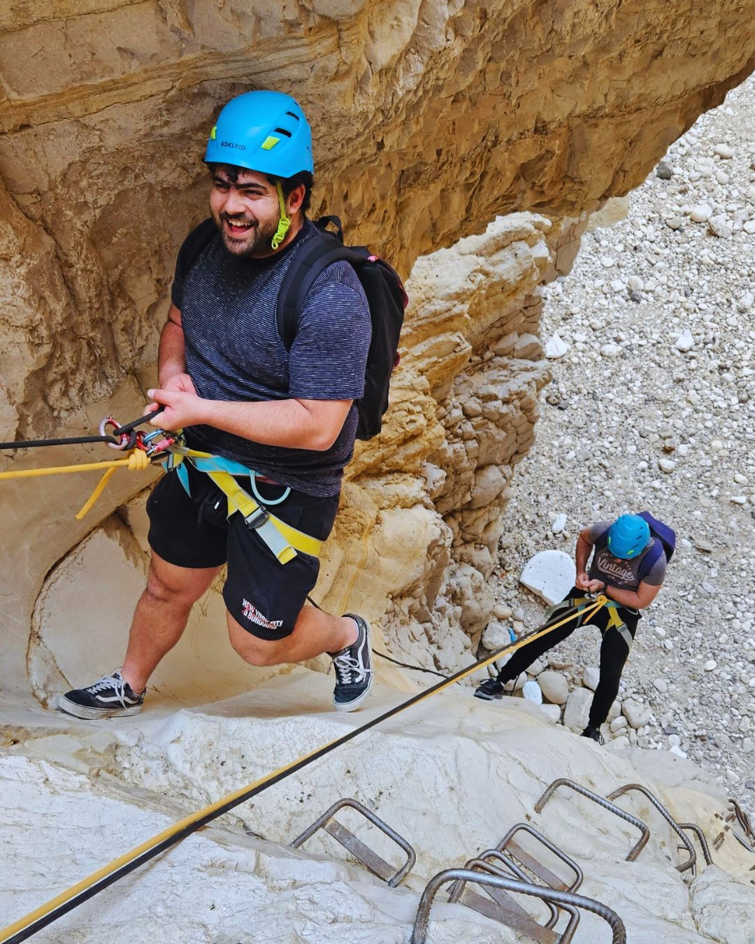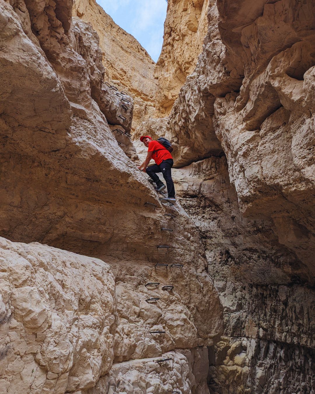 When people think of the desert they may picture a land devoid of any life, and caravans traveling to exotic and distant lands. They may even think of the stories from Arabian Nights. However, the desert is a magical place filled with astonishing beauty and a tangible silence. Nachal Og is a hike that brings you through a dry gorge that was formed by the Og stream. It drains from the Judean Mountains and into the Dead Sea during the winter period. In many areas it is incredibly wide and flat, and in others it becomes narrow. There are several spots where we can rappel down the dry waterfall beds. These dry beds were created by rare flash floods that swept through the landscape. While we explore, we may encounter mountain goats and desert birds. The rappelling is optional, and if you prefer to go down the ladders, go right ahead! Nachal Og is perfect all year round, and is a perfect hike for beginners and families who want to improve their hiking and rappelling skills.Estimated time: 3- 5 hours.