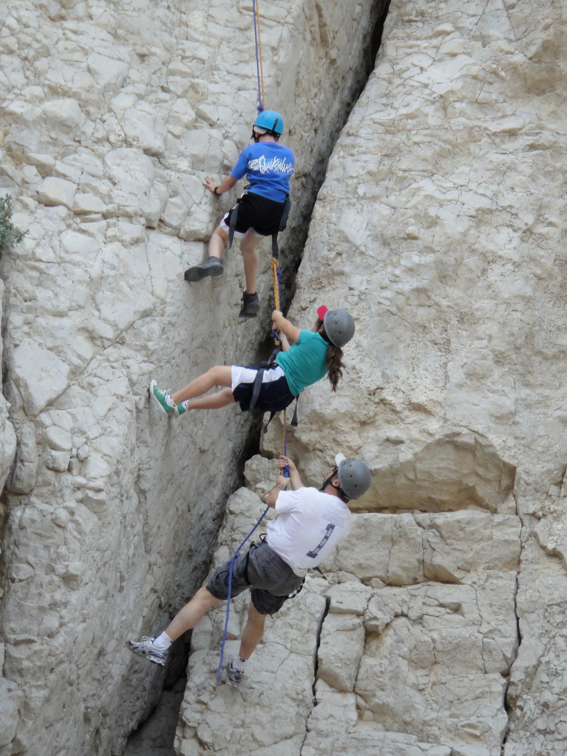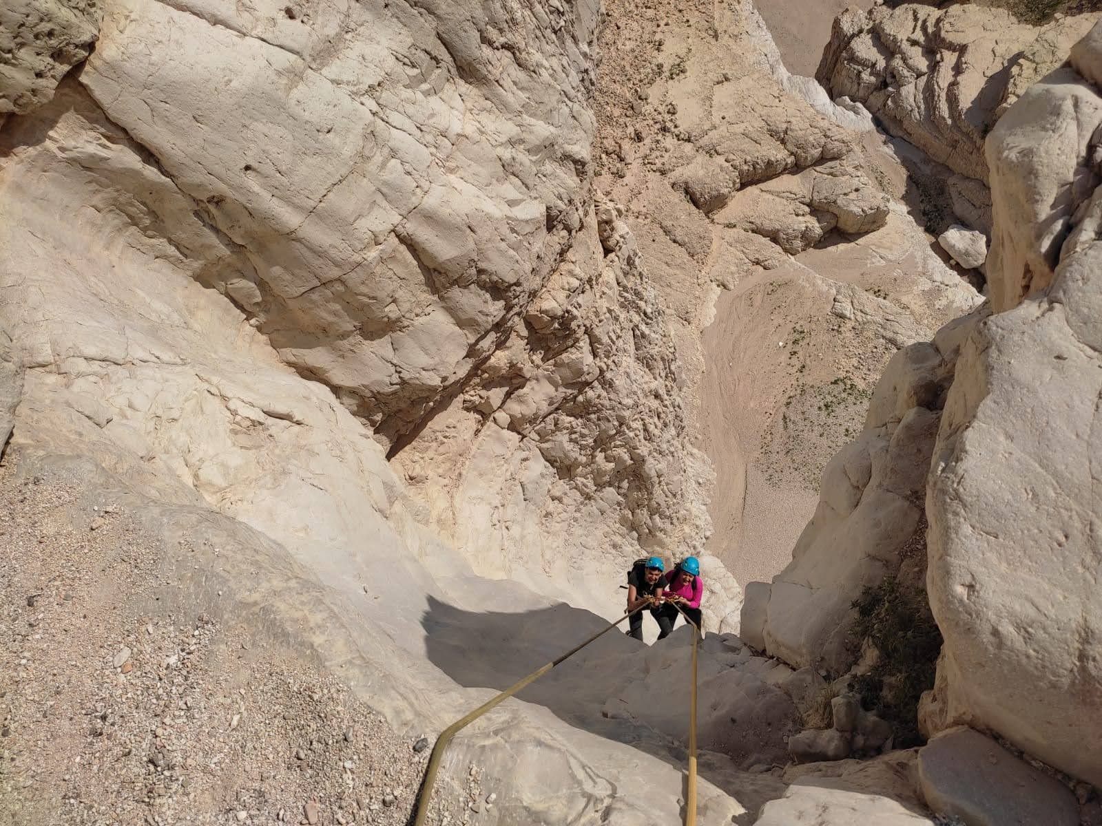 An adventurous, technical hike requiring special gear and a licensed guide.Rappelling in Israel. Canyoneering in Israel. Hiking In Israel. Amazing views. Seriously high rappels. An amazing, adventure…all this and more when you trek Nahal Tamarim with Israel Extreme… We start the hike at the bottom of the canyon close to the Dead Sea beaches, heading into the desert. As we zigzag our way up the canyon trail we will be enchanted by beautiful scenery and panoramic views of the Dead Sea and the mountains of Moav and Adom. As we climb higher and higher, the blue sky is ahead of us. Once we reach the top of the canyon, we will turn and head into Nahal Tamarim. Be prepared for a real adventure. As we hike and rappel down through the canyon, the glistening Dead Sea lies before us (See picture below)… With luscious fig trees in the distance we will excitedly approach our first high waterfall and rappel down over 200 feet to continue on our adventure…… most of the year the falls are dry; the only time there is running water is after the rains. We will continue hiking until we come to the next obstacle, another high cliff (dry waterfall). Each fall is different and exciting in its own way. Some of these falls have fascinating geological shapes, carved by the water, which makes the rappelling through them exceptionally interesting… We will continue like this on our amazing rappelling adventure until we arrive back to where we started, close to the beaches of the Dead Sea. As a bonus when walking down into the canyon (depending on the time of year), we are likely to see wild animals and birds, including eagles that nest in the cliffs.Estimated time for the day: 4 ½-7 hours.